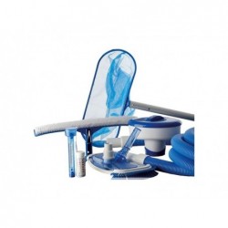 Kit Pulizia Piscine GRE AR2064 Caratteristiche: - Ideale per Piscine Fuoriterra. Include: - Tubo flessibile (6 m di lunghezza) con Adattatore da 38 mm. - Puliscifondo con Asta - Asta con 3 sezioni - Strisce di controllo (tester di reazione, un flacone) - Dosificatore ovale - Raccogli foglie - Spazzola per il liner. - Termometro galleggiante.