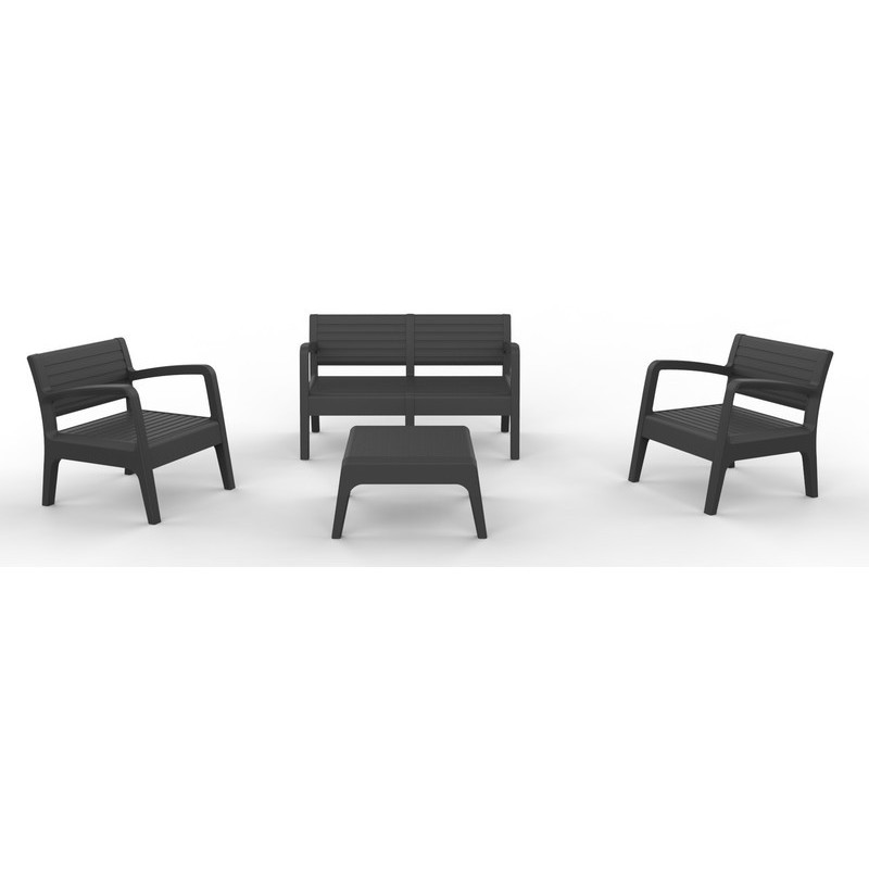 Rinnova lo stile e il comfort del tuo giardino o della tua terrazza, grazie a questo Set modello Miami Antracite di SP Berner. Un pacchetto nuovo e completo fatto di materiali di alta qualità, con un design di grande successo e le dimensioni ideali per essere collocato a vostro piacimento nello spazio più speciale della casa. Informazioni di interesse: + Dimensioni approssimative del divano: 120 cm di larghezza x 72 cm di profondità x 69 cm di altezza. + Dimensioni approssimative di ogni poltrona: 62 cm di larghezza x 72 cm di profondità x 69 cm di altezza. + Dimensioni approssimative del tavolo: 62 cm di larghezza x 35 cm di profondità x 66 cm di altezza. + Età consigliata per l'uso: dai 5 anni in su. + Il set comprende 1 divano a due posti, 1 tavolino e 2 poltrone a un posto. + Numero totale di posti: 4. + Modello: Miami Antracite. Informazioni extra sull'articolo: + Fabbricato in spagna. + Molto facile da montare e pulire. + Materiale resistente alla pioggia e ai raggi UV. + 5 PP (polipropilene). + Fatto di materiali in resina senza componenti metallici.