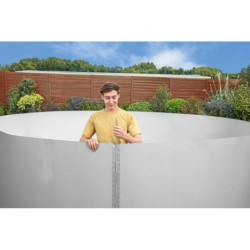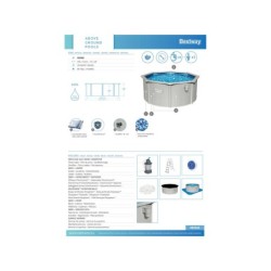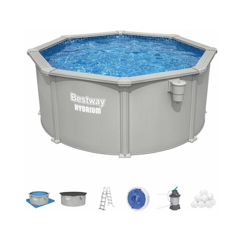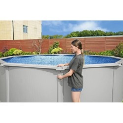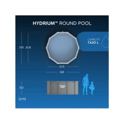 PISCINA BESTWAY HYDRIUM 56566 305 x 122 cm Fantastica per la tua terrazza o il tuo giardino. Grande resistenza. Caratteristiche: - Capacità di 7.630 litri (circa al 90%) - Dimensioni 305 x 122 cm (diametro x altezza) - Spazio necessario con supporti: 350 x 350 cm - Tempo di installazione: 2 ore (circa, con 2 o 3 persone) - Bordo superiore intorno alla piscina largo 16 cm - Può rimanere montata tutto l’anno Include: - Liner trattato resistente ai raggi UV - Filtro a sabbia da 3.596 L/h - Sfere filtranti Polysphere per il filtro - Scala di sicurezza con 4 gradini - Dispenser Chemconnect - Tappeto di base - Copertura - Skimmer