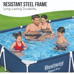 PISCINA FUORITERRA 300x201x66 cm BESTWAY 56411 Godi della tua Piscina Rettangolare Bestway, perfetta per la tua terrazza o giardino. È molto resistente e con struttura metallica. Caratteristiche: - Dimensione: 300 x 201 x 66 cm (lunghezza x larghezza x altezza) - Spazio di istallazione: 355 x 255 cm - Capacità d'acqua: 3.300 litri - Struttura a paletti in acciaio resistenti. - Tela spessa. Inclusa di Accessori: - Liner con tecnologia Tritech: 3 strati di poliestere rafforzati con lamine in PVC, garantisce un'elevata resistenza ai raggi solari, ai prodotti chimici e alla pressione dell'acqua. - Pompa a Filtro cod. 58381 con Filtro con Cartuccia cod. 58093, da 1.249 l/h. - Filtri.