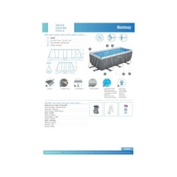 PISCINA FUORITERRA 412x201x122 cm BESTWAY 56456 Perfetta per la tua terraza e il tuo giardino. Dotato di grande resistenza. Caratteristiche: - Capacità d'acqua: 8.124 litri - Dimensione: 412 x 201 x 122 cm (altezza x larghezza x altezza) - Spazio per il montaggio: 465 x 258 cm - Struttura a Paletti in acciaio, e tela ben ferma e molto resistente. Inclusa di Accessori: - Pompa con Filtro con Cartuccia da 2.006 l/h cod. 58383 (utilizza cartucce filtranti cod. 58094 incluse) - Liner di color Grigio con Tecnologia Tritech: 3 strati di poliestere rafforzati con lamine in PVC, garantisce un'elevata resistenza ai raggi solari e ai prodotti chimici. - Scaletta di Sicurezza con 4 gradini - Toppe di Riparazione. - DVD con Guida e Istruzioni. - Dosatore chimico ChemConnect (per 2,54 cm. Compresse non incluse)