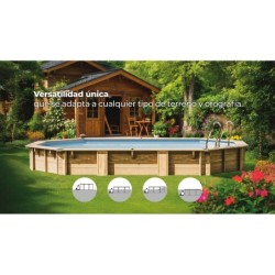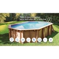 Goditi tutti i vantaggi di una piscina in legno a casa tua con questa fantastica e super bella Piscina Ovale in Legno di Bambù 2 da 535x335x136 cm di Gre. Una piscina super performante, lunga più di cinque metri, super accessoriata e con un look super elegante, per dare quel tocco da sogno al giardino di casa tua. Il pacchetto include: - 1 piscina Bambu 2 in legno. - Rivestimento in PVC con uno spessore di 60/100 e trattamento speciale contro i raggi UV. - Depuratore con filtro a sabbia con capacità di 6.000 l/h e sabbia inclusa. - Scaletta con struttura esterna in legno e interna in acciaio inossidabile. - Telo protettivo con uno spessore di 200 g/m². - Finiture metalliche, doppie spiagge (14,5 cm x 2 = 29 cm), spessore 2,8 cm, incastro 19 cm e spessore del legno 46 mm. Informazioni utili sull'articolo: - Età consigliata per l'uso: + 6 anni. - Dimensioni approssimative della piscina: 535 cm di lunghezza x 335 cm di larghezza x 136 cm di altezza. - Dimensioni approssimative dell'interno della piscina: 487 cm di lunghezza x 287 cm di larghezza x 133 cm di altezza (linea di galleggiamento a 123 cm di altezza). - Spazio minimo necessario per l'installazione: 545 cm di lunghezza x 435 cm di larghezza x 15 cm di profondità (3,56 m³). - Capacità approssimativa della piscina: 15.400 litri. - Peso approssimativo della piscina senza acqua: 1.381 kg. - Sistema Omegas, lastra di cemento opzionale.