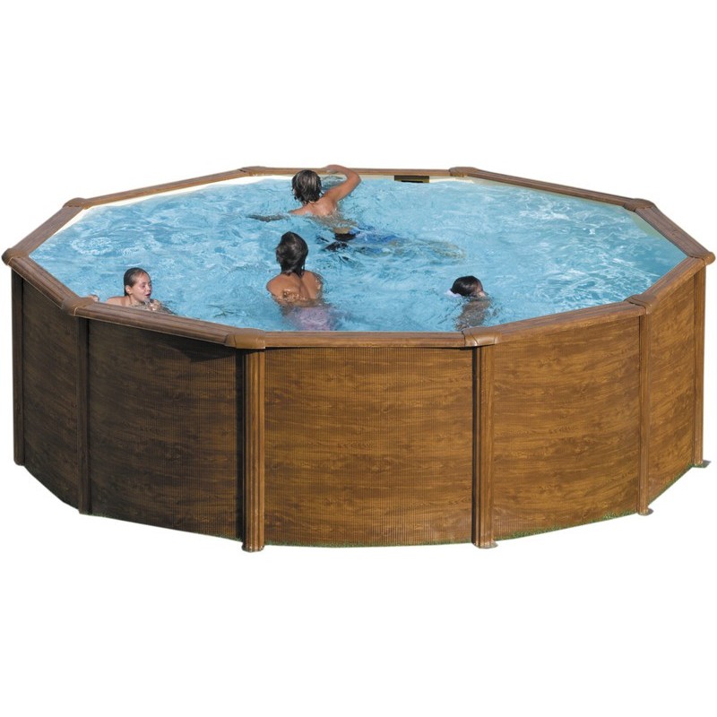 PISCINA OVALE CON PARETI D'ACCIAIO DESIGN LEGNO SERIE SICILIA KITPROV353W Fantastica per il giardino o terrazza Caratteristiche: - Dimensioni: 120 cm (altezza) - Capacità d'acqua: 10.102 litri (approx.) - Spazio necessario per montarla : 400 x 400 cm (lato x lato) - Pannello laminato a freddo, con trattamenti di galvinizzazione, fosfatazione e preparazione - Stampigliatura per Skimmer e valvola di ritorno dell'acqua Con: - Liner PVC color blu 30/100 sistema OV (overlap), trattamento anti raggi UV - Pompa con filtro con cartuccia 3,8 m3 /h - Scaletta di sicurezza Garanzia e servizio postvendita dal produttore