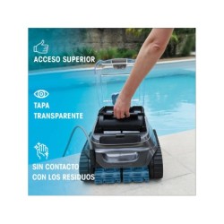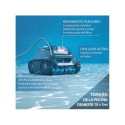 Se vuoi pulire la tua piscina in modo più efficiente, veloce e facile, ecco il nuovo ed efficace Robot pulitore Zodiac CNX 2590 per piscine interrate e fuori terra di Gre, goditi tutti i suoi vantaggi fin dal primo giorno che arriva a casa tua. Il pacchetto include: - 1 robot pulitore CNX 2590 di Zodiac con tre motori protetti, trazione a cingoli, trasmissione a ingranaggi, sistema di arresto automatico all'uscita dall'acqua, sistema spiaggia, filtro con capacità di 4 litri con coperchio trasparente per vedere il filtro, design leggero e resistente e unità di controllo con base. Informazioni utili sull'articolo: - Età consigliata per l'utilizzo: + 16 anni. - Dimensioni approssimative del robot pulitore: 30 cm di altezza, 40 cm di larghezza e 43 cm di profondità. - Per piscine interrate e fuori terra fino a 10 metri di lunghezza e 5 metri di larghezza con pareti rigide di qualsiasi forma, fondi e rivestimenti. - Aree di pulizia: fondo, pareti e linea di galleggiamento. Cicli di pulizia: 2 modalità di pulizia. - Peso approssimativo dell'articolo: 8 kg. - Lunghezza approssimativa del cavo: 15 m. - Livello di filtraggio: 150/60 micron. - Copertura di pulizia: 23 cm. - Superficie filtrante: 1.066 cm².